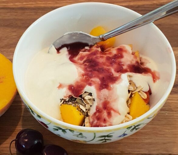 • 1 dessertspoon of raspberry syrup or alternatives include maple syrup, honey or a different fruit syrup.